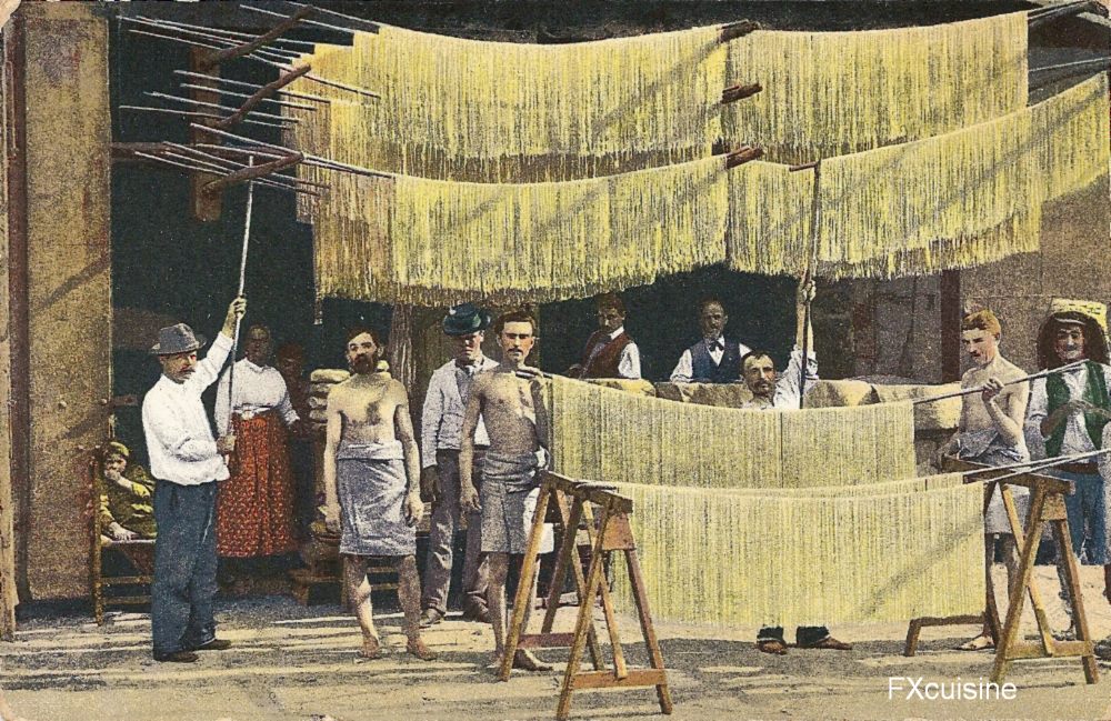 Grâce au climat aride et sec de cette zone géographique, qui permet la culture de blé dur, céréale essentielle pour la fabrication de la pâte, la pâte s’est développée dans des villes comme Cagliari, Gragnano, Torre del Greco, Torre Annunziata, Gênes et dans tout le sud de l’Italie. C’est grâce à leur microclimat que ces zones permettaient une séchage parfait. À l’époque, la pâte était séchée à l’extérieur des usines de pâte, et un séchage lent (48-60 heures) est indispensable pour une pâte de qualité.